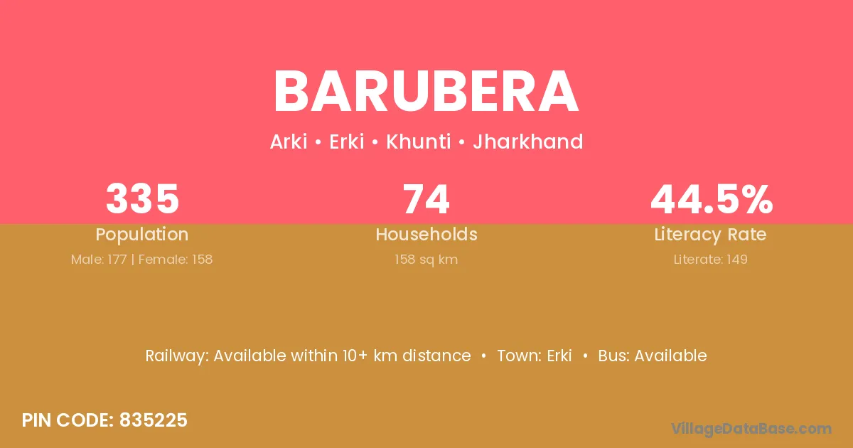 Barubera village is located in the Erki Subdivision of the Khunti district in Jharkhand .