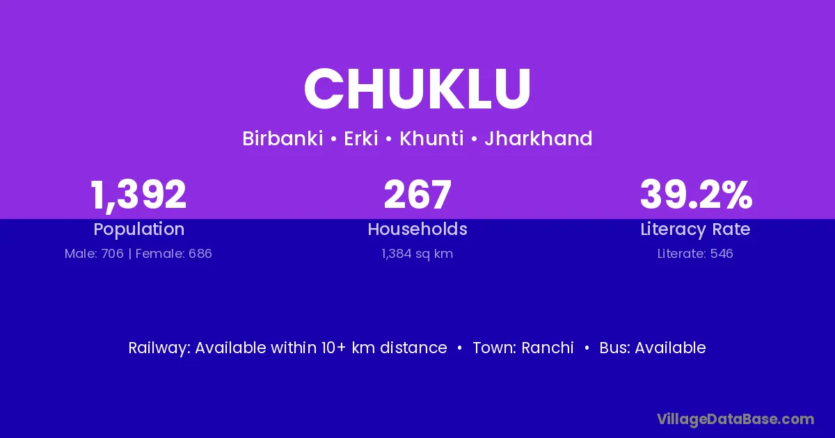 Ranchi is the nearest town to Chuklu village for major economic activities