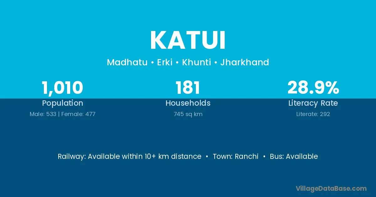 Katui village has a total population of 1,010 people, of which 533 are males and 477 are females.