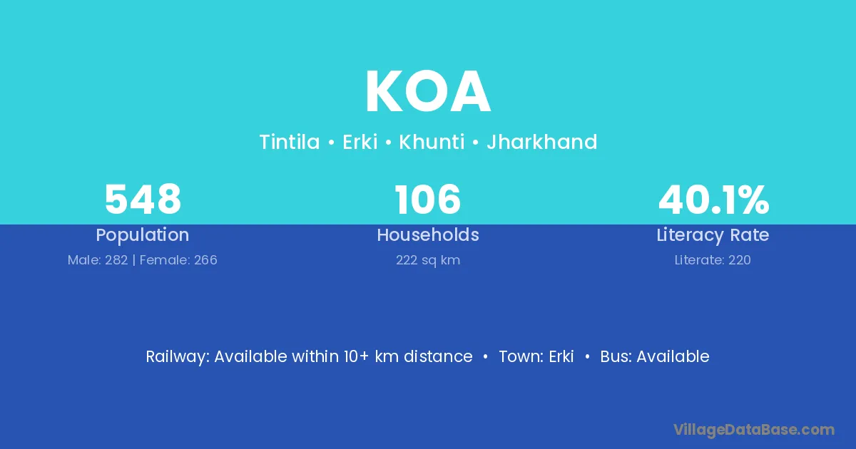 Koa village is located in the Erki Subdivision of the Khunti district in Jharkhand .