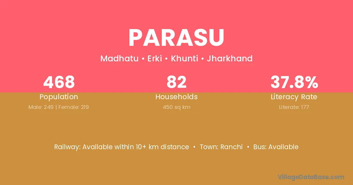 Parasu village has a total population of 468 people, of which 249 are males and 219 are females.