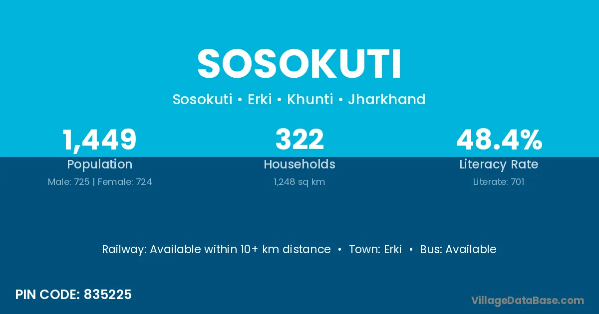 According to Census 2011 information, the village code of Sosokuti village is 835225.