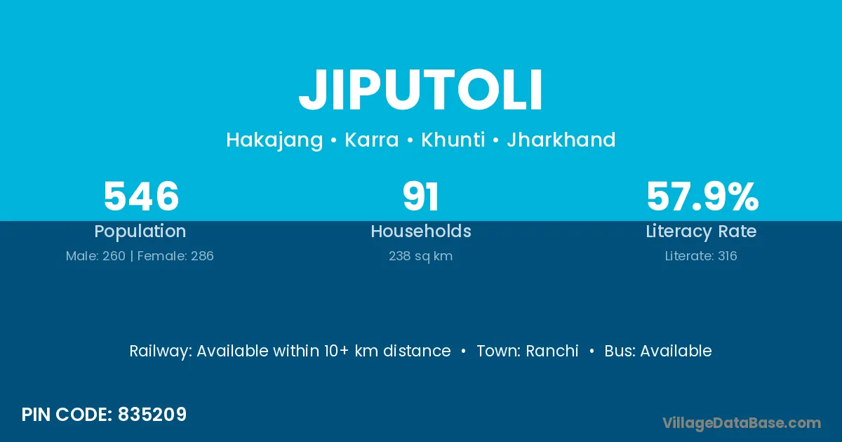 Ranchi is the nearest town to Jiputoli village for major economic activities