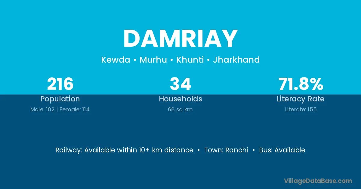 Ranchi is the nearest town to Damriay village for major economic activities