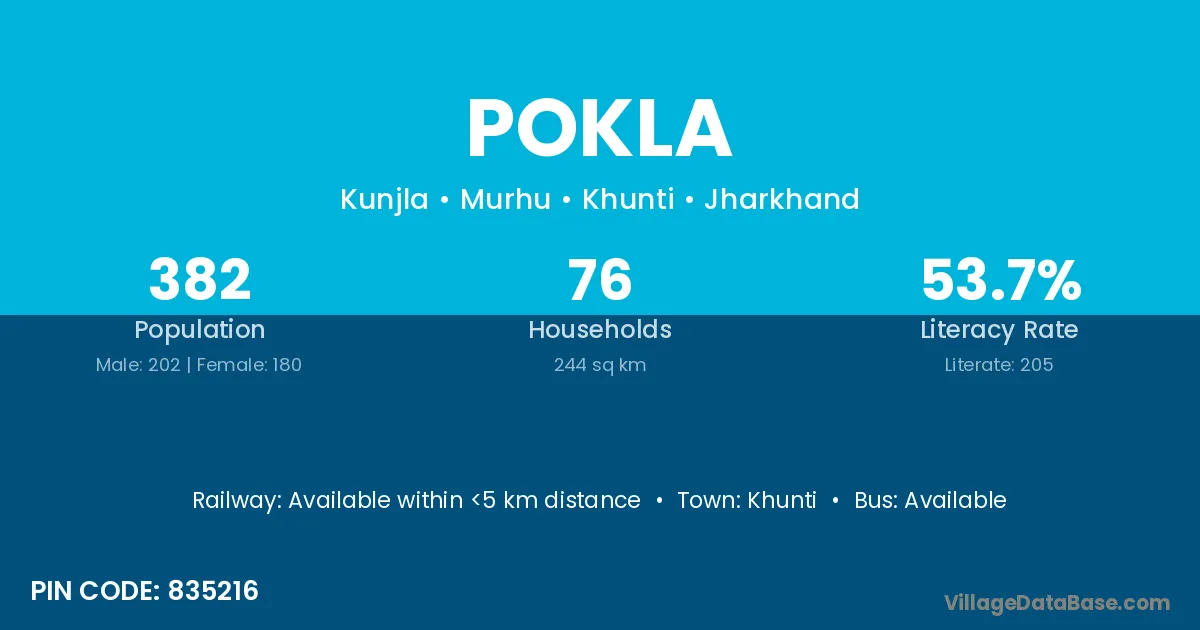 Pokla village is located in the Murhu Subdivision of the Khunti district in Jharkhand .