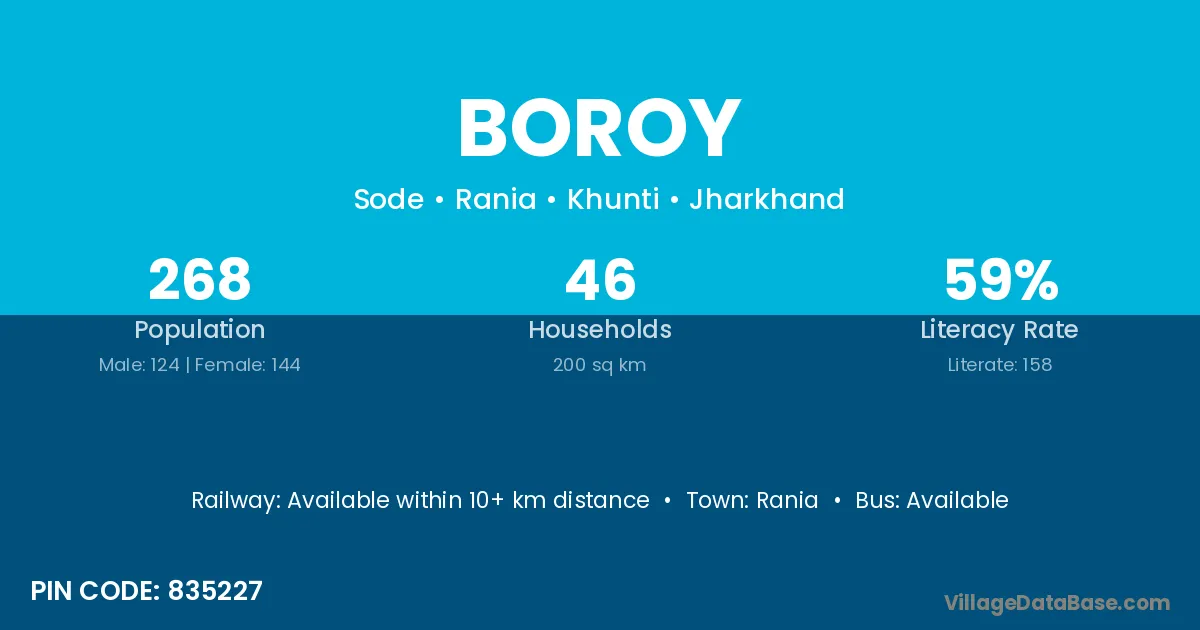 Boroy village is located in the Rania Subdivision of the Khunti district in Jharkhand .