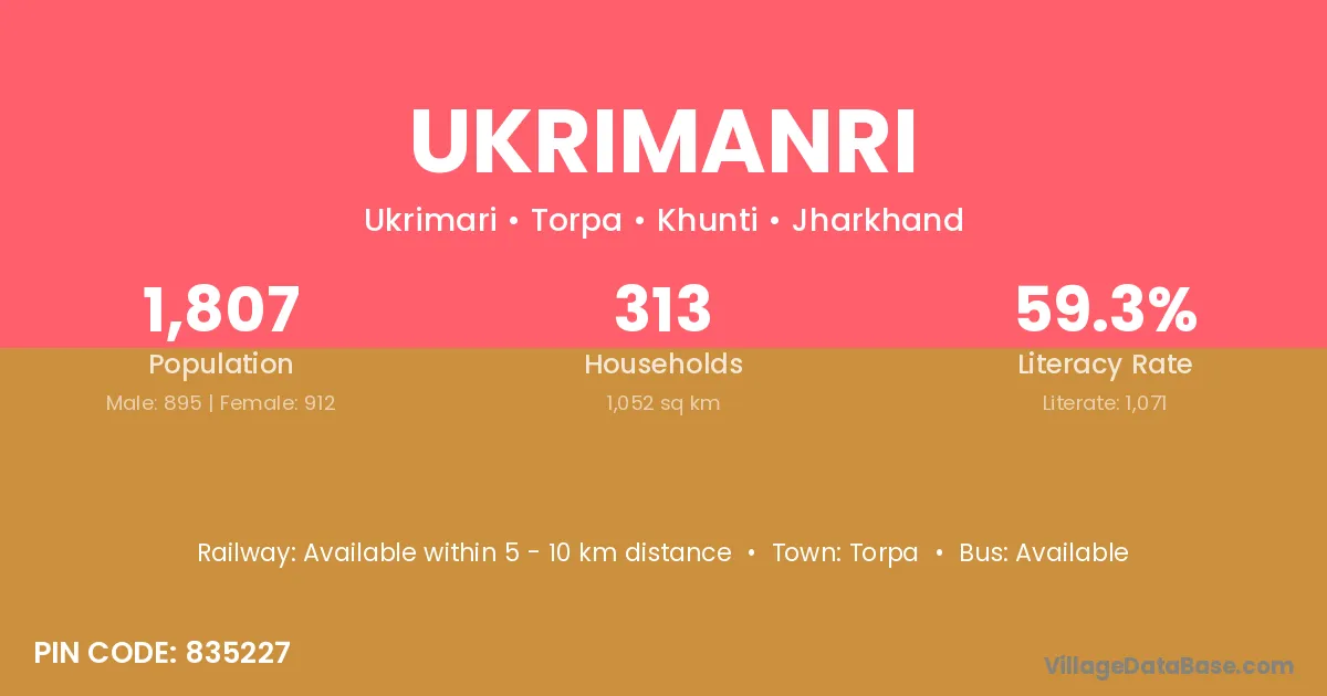 Ukrimanri village is located in the Torpa Subdivision of the Khunti district in Jharkhand .