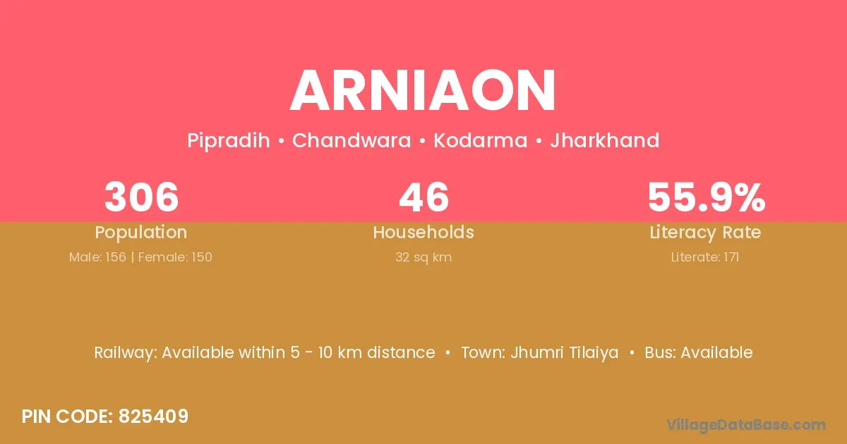 Jhumri Tilaiya is the nearest town to Arniaon village for major economic activities