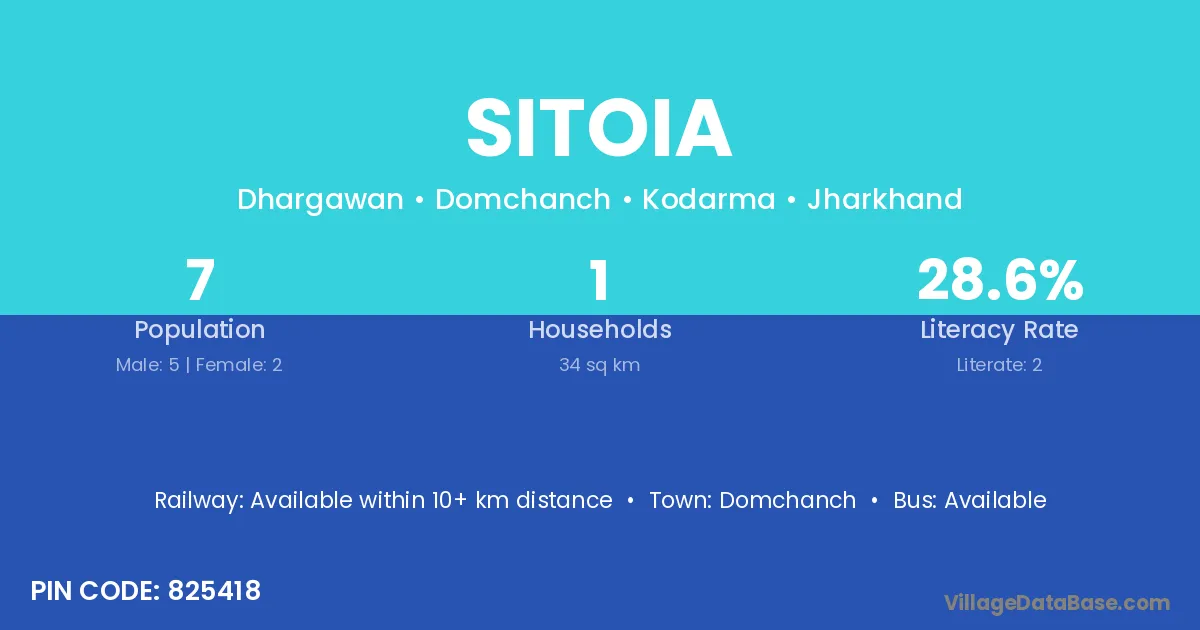 Sitoia village is located in the Domchanch Subdivision of the Kodarma district in Jharkhand .