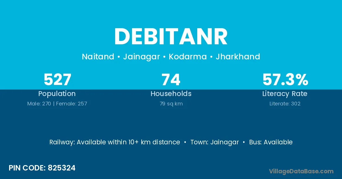 Debitanr village has a total population of 527 people, of which 270 are males and 257 are females.