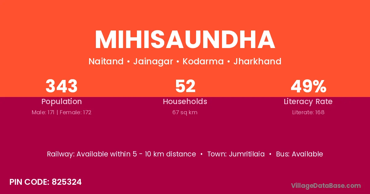 Jumritilaia is the nearest town to Mihisaundha village for major economic activities