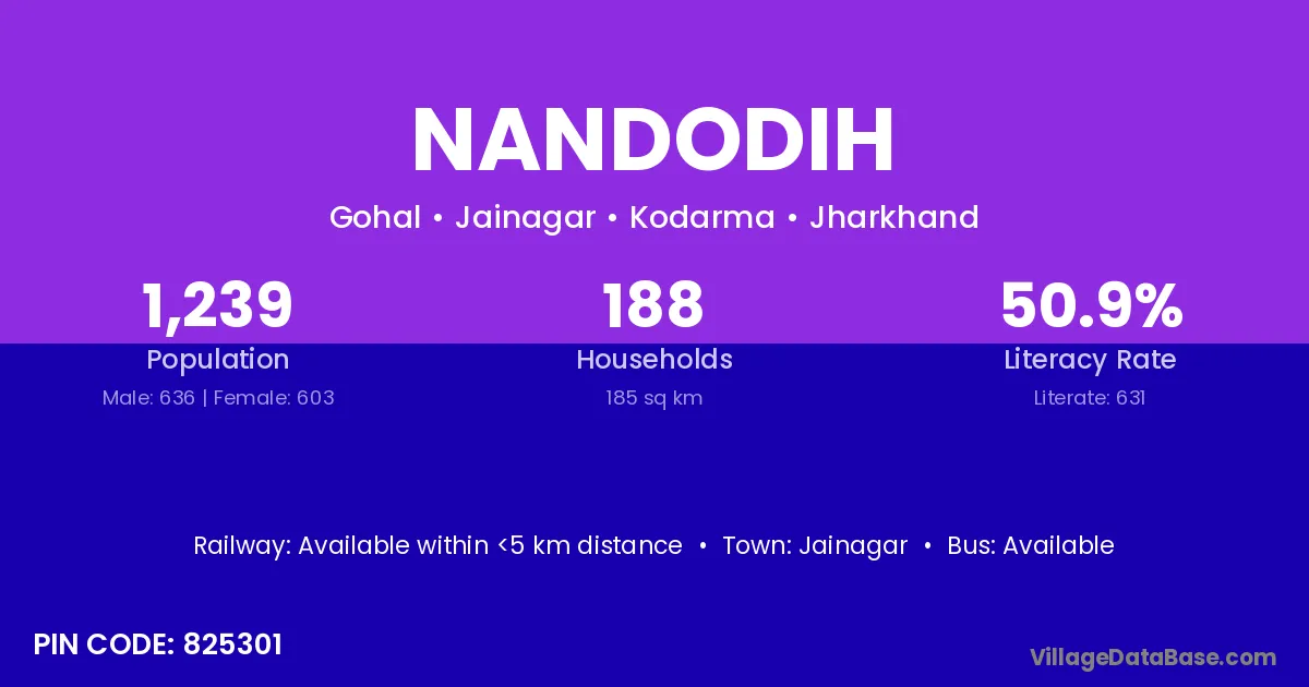 Nandodih village has a total population of 1,239 people, of which 636 are males and 603 are females.