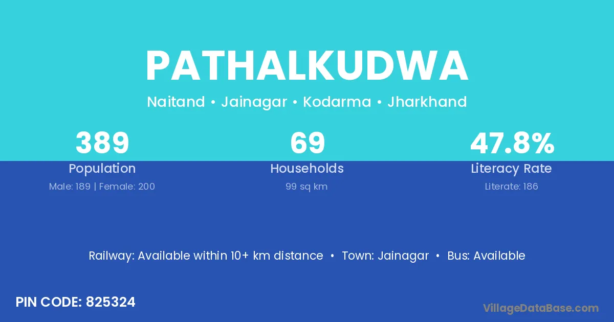 Pathalkudwa village has a total population of 389 people, of which 189 are males and 200 are females.