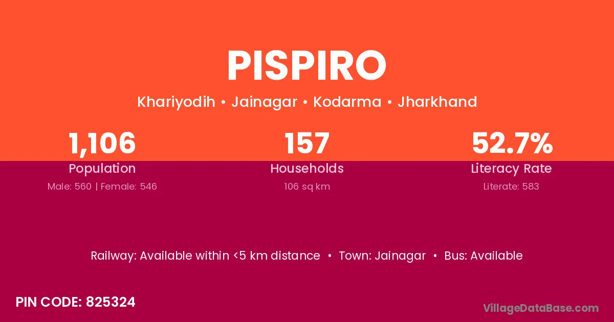 Pispiro village has a total population of 1,106 people, of which 560 are males and 546 are females.