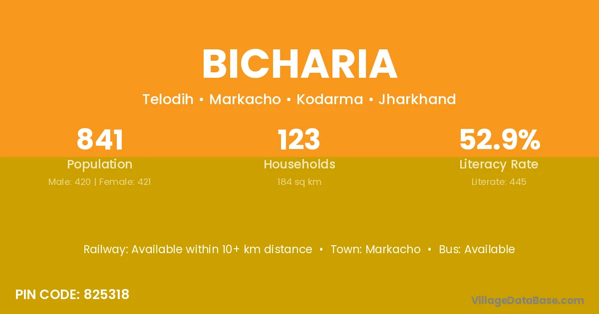 Bicharia village is located in the Markacho Subdivision of the Kodarma district in Jharkhand .