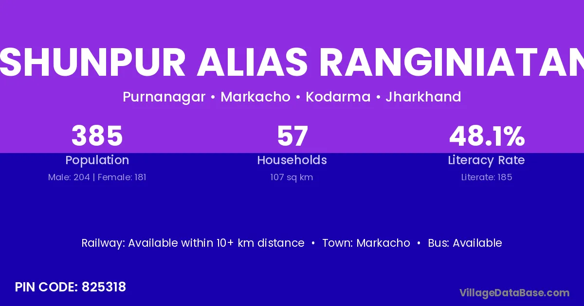 Bishunpur Alias Ranginiatanr village has a total population of 385 people, of which 204 are males and 181 are females.