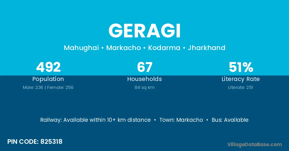 Geragi village is located in the Markacho Subdivision of the Kodarma district in Jharkhand .