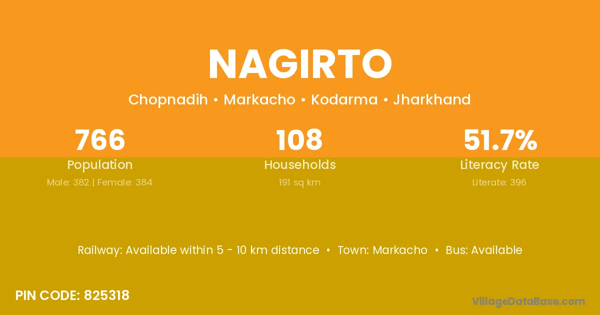 Nagirto village is located in the Markacho Subdivision of the Kodarma district in Jharkhand .