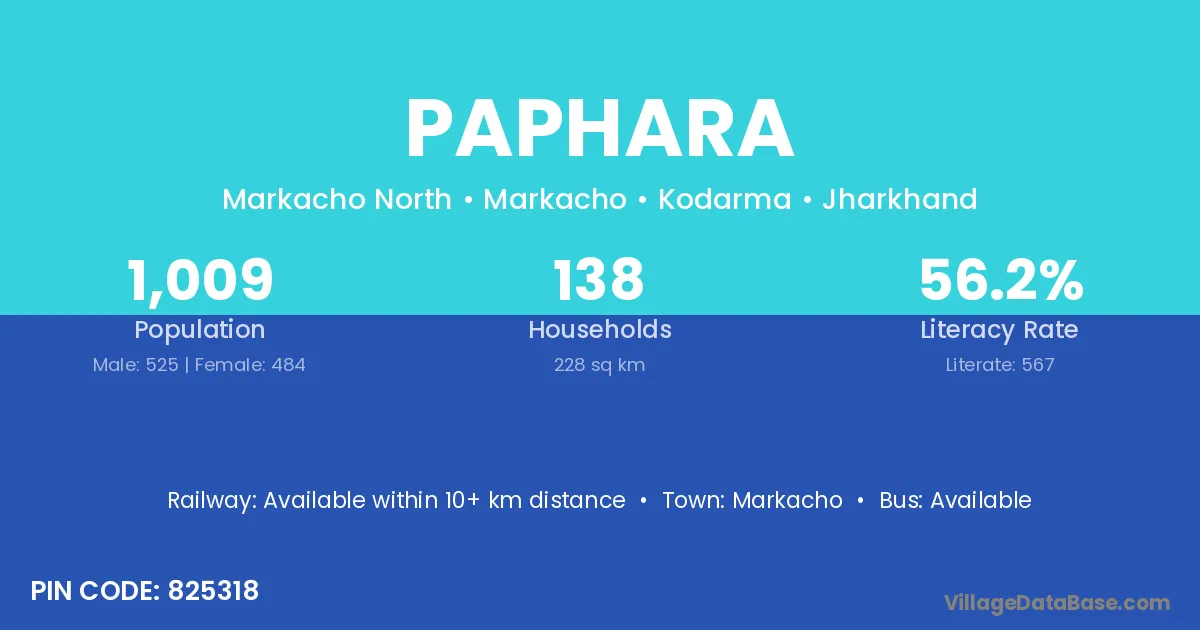 Paphara village has a total population of 1,009 people, of which 525 are males and 484 are females.