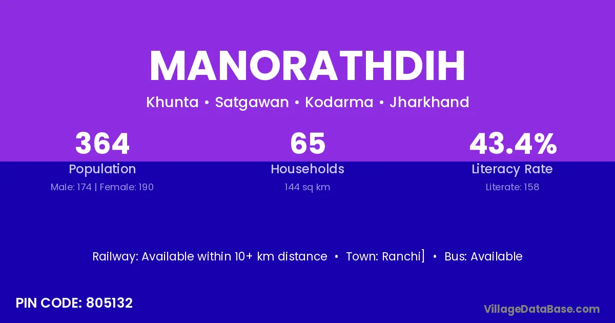 Manorathdih village has a total population of 364 people, of which 174 are males and 190 are females.