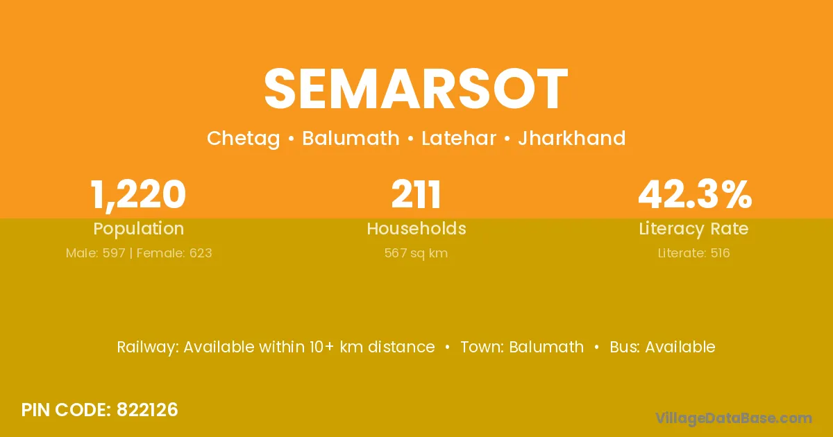 Semarsot village has a total population of 1,220 people, of which 597 are males and 623 are females.