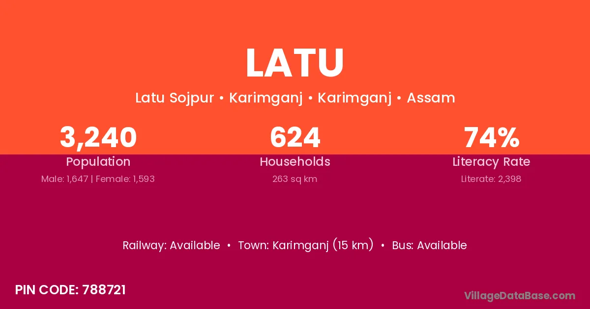 The literacy rate of Latu village is 50.33%. Male literacy stands at 61.80% and female literacy at 38.71%.