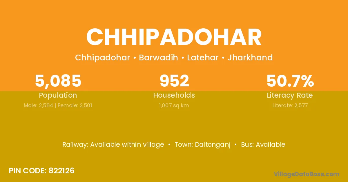 Daltonganj is the nearest town to Chhipadohar village for major economic activities