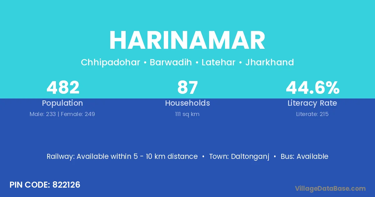Daltonganj is the nearest town to Harinamar village for major economic activities