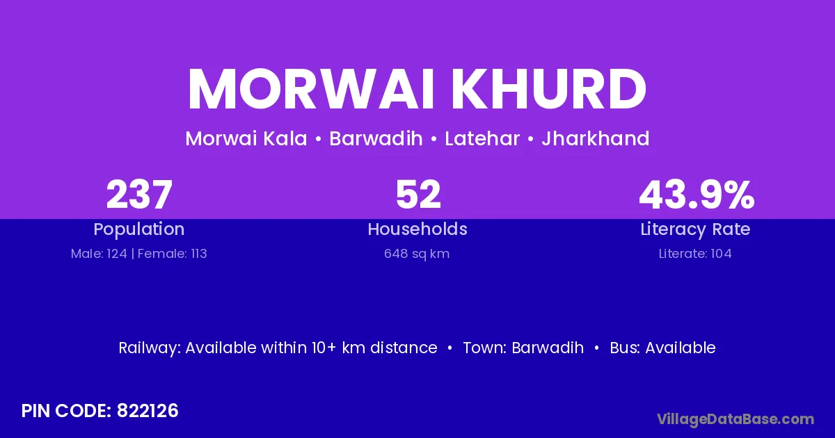 Morwai Khurd village has a total population of 237 people, of which 124 are males and 113 are females.