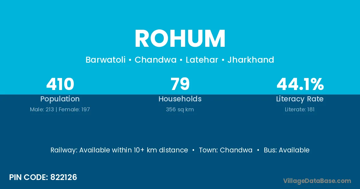 Chandwa is the nearest town to Rohum village for major economic activities
