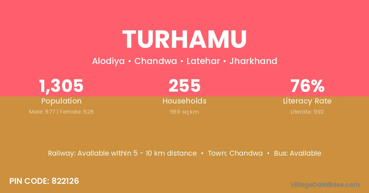 The literacy rate of Turhamu village is 76.02%. Male literacy stands at 82.27% and female literacy at 69.27%.