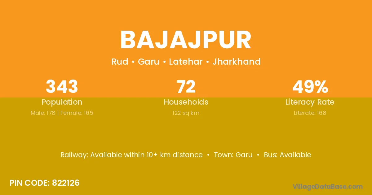 Bajajpur village has a total population of 343 people, of which 178 are males and 165 are females.