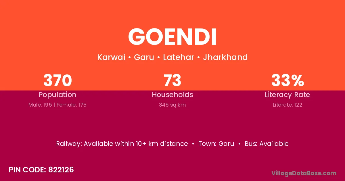 Goendi village has a total population of 370 people, of which 195 are males and 175 are females.