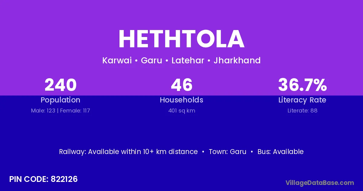Hethtola village is located in the Garu Subdivision of the Latehar district in Jharkhand .