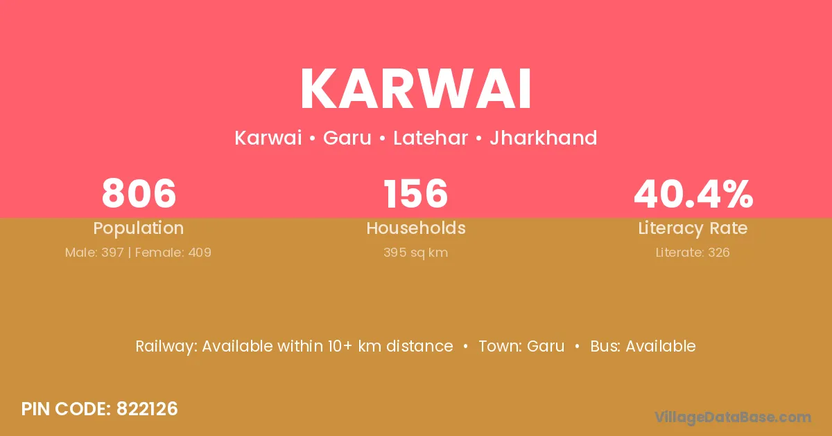 Karwai village has a total population of 806 people, of which 397 are males and 409 are females.
