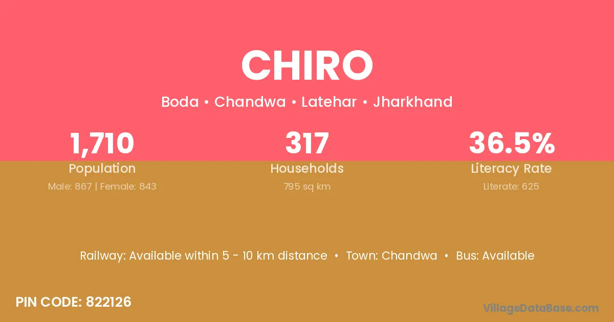 According to Census 2011 information, the village code of Chiro village is 822126.