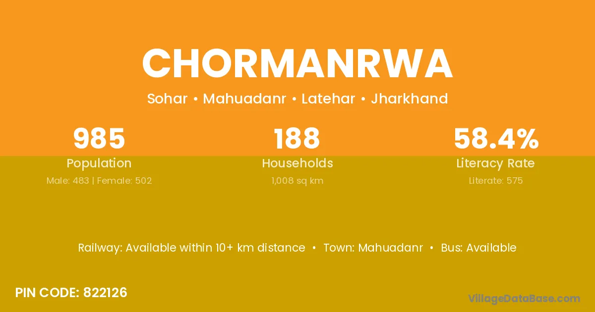 Mahuadanr is the nearest town to Chormanrwa village for major economic activities
