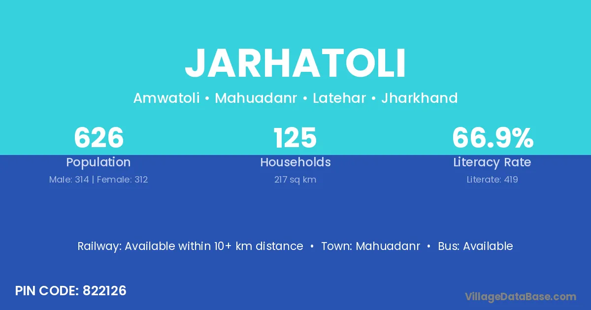 Mahuadanr is the nearest town to Jarhatoli village for major economic activities