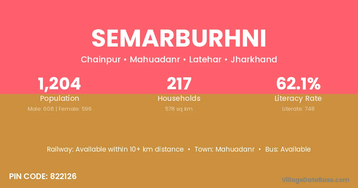 Mahuadanr is the nearest town to Semarburhni village for major economic activities