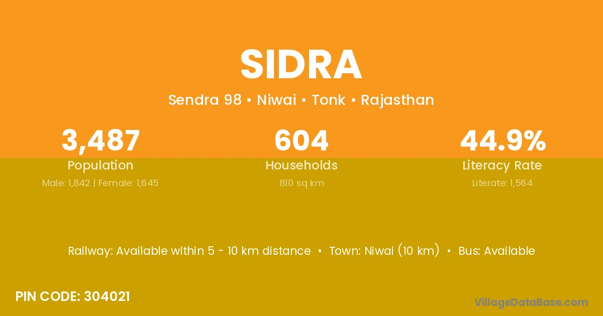 Sidra village has a total population of 995 people, of which 500 are males and 495 are females.