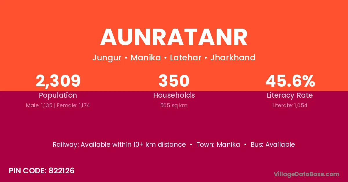 Aunratanr village has a total population of 2,309 people, of which 1,135 are males and 1,174 are females.