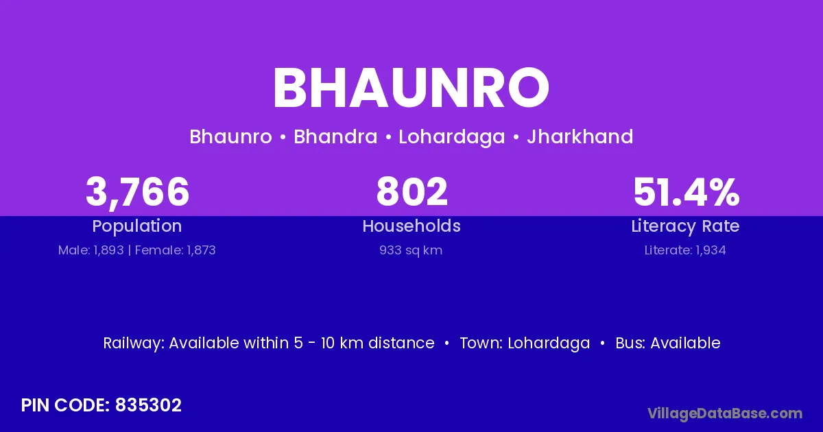 According to Census 2011 information, the village code of Bhaunro village is 835302.