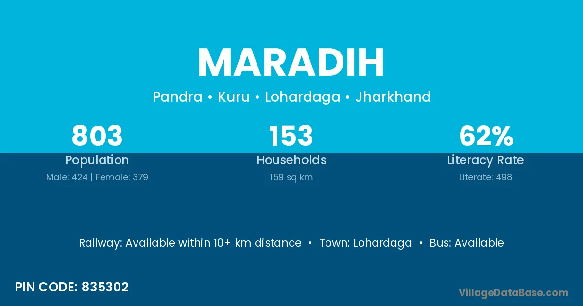 According to Census 2011 information, the village code of Maradih village is 835302.