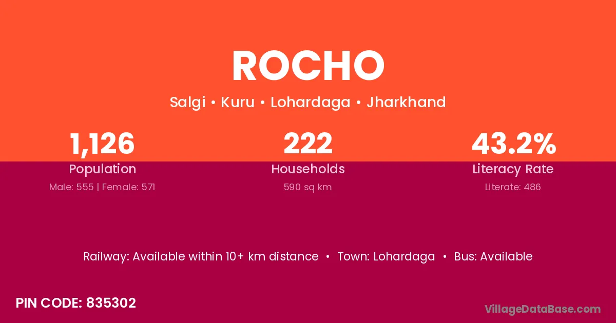 According to Census 2011 information, the village code of Rocho village is 835302.