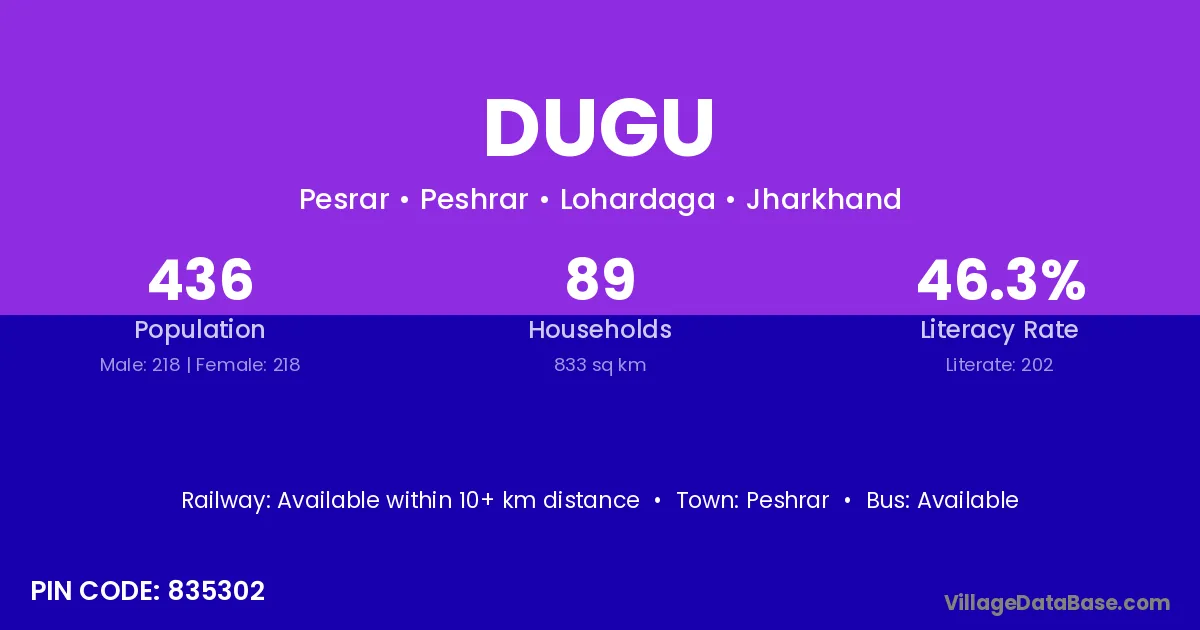 According to Census 2011 information, the village code of Dugu village is 835302.
