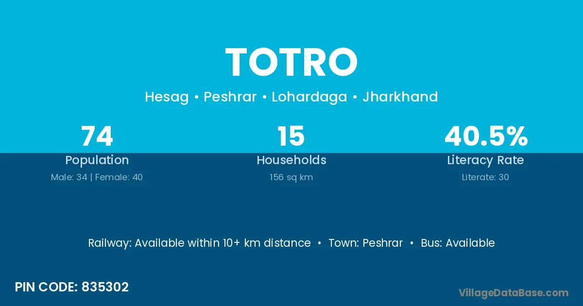 According to Census 2011 information, the village code of Totro village is 835302.