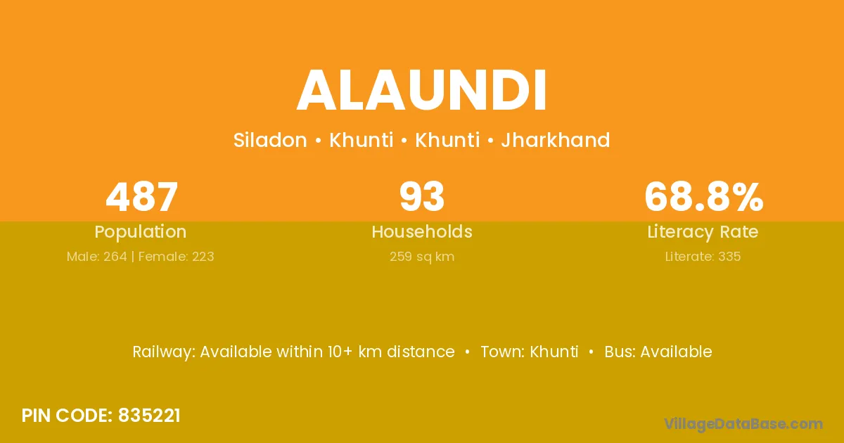 According to Census 2011 information, the village code of Alaundi village is 835302.