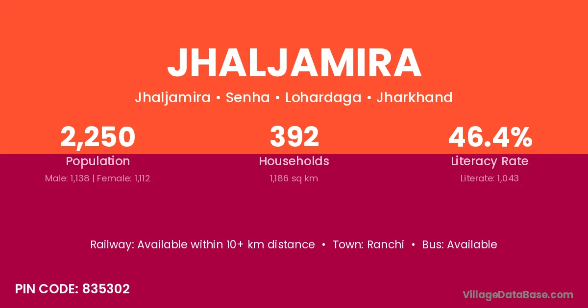 Ranchi is the nearest town to Jhaljamira village for major economic activities