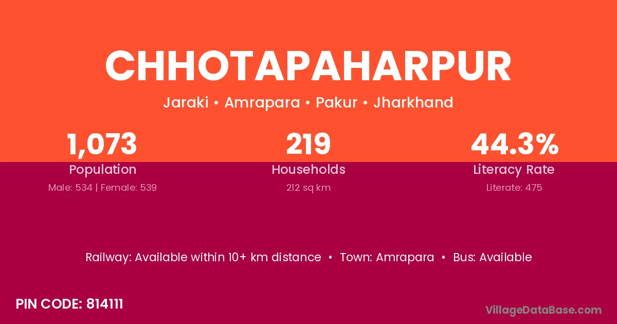 Chhotapaharpur village has a total population of 1,073 people, of which 534 are males and 539 are females.