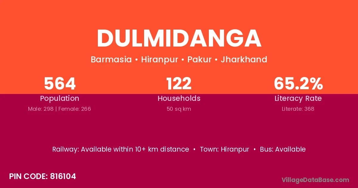 Hiranpur is the nearest town to Dulmidanga village for major economic activities